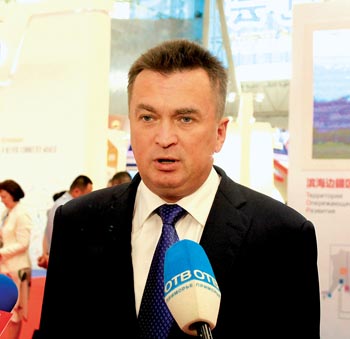 在首届中俄博览会暨第25届“哈洽会”上,俄罗斯馆滨海边疆区展区内,俄罗斯滨海边疆区州长弗拉基米尔·米科鲁申斯基接受了中外记者的采访。